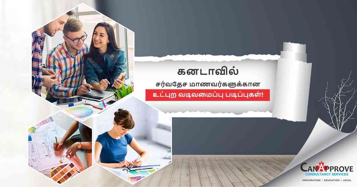 கனேடிய நிறுவனங்கள் வெவ்வேறு களங்களில் உள்ள சர்வதேச மாணவர்களுக்கு பல்வேறு பாடத் திட்டங்களை வழங்குகின்றன. உட்புற வடிவமைப்பைப் படிக்க காத்திருப்பவர்களுக்கு இது ஒரு சிறந்த வாய்ப்பு. இப்போது, உட்புற வடிவமைப்பிற்காக படிப்புகள் திறக்கப்பட்டுள்ளன. நீங்கள் ஒரு உட்புற வடிவமைப்பாளராக மாற விரும்பினால், CanApprove உடன் விண்ணப்பிக்கவும். நாங்கள் உதவ இங்கே இருக்கிறோம்.